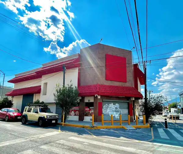 Local comercial en renta con oficinas en la colonia Nuevo Repueblo, Monterrey. Construcción de 400 m² en dos niveles, con área de oficinas en planta alta, dos baños, punto de venta, acceso de carga y descarga, y preparación para cuarto frío. Ubicado en esquina. Opcional terreno adjunto de 438.90 m² ideal para estacionamiento, disponible por separado o en conjunto.