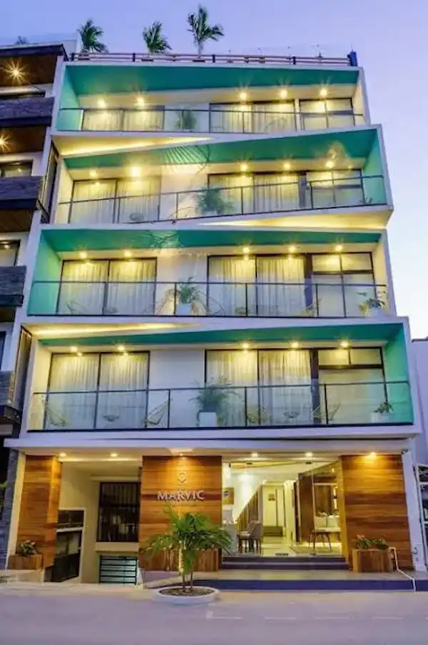 Hotel boutique en venta en la colonia Zazil-Ha, Playa del Carmen, Quintana Roo, a dos cuadras de la playa. Cuenta con 32 habitaciones entre suites y recámaras, distribuidas en 6 niveles. Dispone de restaurante en quinto nivel, alberca con vista panorámica, 20 baños, 1 medio baño y 5 estacionamientos. El hotel se encuentra en buen estado, con operación activa, clientela consolidada y gran potencial como inversión turística.