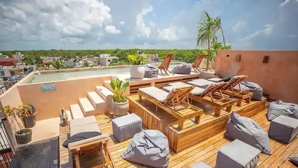 Hotel boutique en venta ubicado en el corazón de la Ciudad del Amanecer, actualmente en operación y con diseño de estilo mexicano contemporáneo que combina tradición y confort moderno. Cuenta con 26 suites amuebladas y equipadas, distribuidas en 7 tipos de habitaciones, cada una con concepto propio. Ofrece roof top con vista panorámica, albercas, áreas de hamacas, duchas al aire libre y jardín tropical.