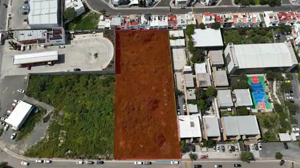 Terreno en venta ubicado en Anillo Vial Fray Junípero Serra, La Cima, Santiago de Querétaro. Con superficie de 4,710.95 m², frente de 45 m y fondo de 105 m. Uso de suelo habitacional mixto con comercial, ideal para desarrollos de densidad media alta. Se localiza a solo 70 m de la vialidad principal, frente a parque público. Permite hasta 3 niveles de altura y 40% de área libre, dentro de una zona ampliamente habitada.